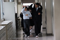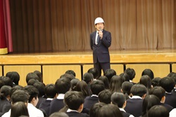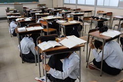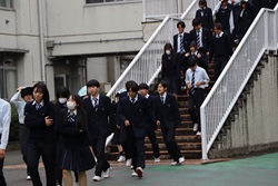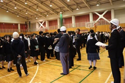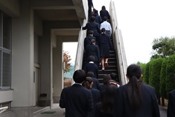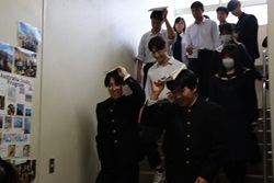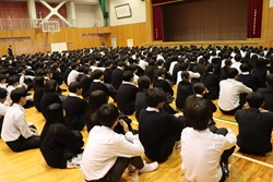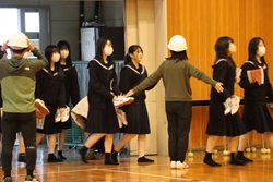 10月22日(水)5校時に「第2回避難訓練」が実施されました。今回の避難訓練は、「防災の意識の高揚をはかり、人命尊重を第一に安全に避難できるようにする。地震発生時の状況に応じた的確な判断と敏速な行動ができるようにする。」という目的で、予告なしで行われました。緊急放送後、生徒たちは机の下にもぐり、その後指示通りに避難しました。今回は、雨天のため体育館が避難場所になりましたが、生徒たちは、落ち着いて静かに行動し体育館に避難しました。