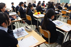 10月29日(水)に進路講演会が、1年生を対象に行われました。山梨日日新聞社が刊行している情報誌「KANAU」から5名の講師をお招きし、講話をしていただきました。「KANAU」は県内の高校生に向けて、地元の様々な職種の企業で働く魅力等を紹介している総合情報誌です。