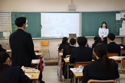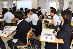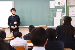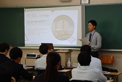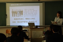 講師は、県内企業の小売業・製造業・福祉系の会社と山梨県警察本部・自衛隊山梨地方協力本部に勤務している本校の卒業生で、高校・大学時代の話や今の仕事を選んだ理由等、参考になる講話をしていただきました。生徒たちは、それぞれの講師の講話を聞いて将来の進路選択や就職について考える機会になりました。