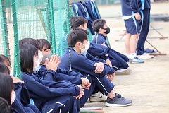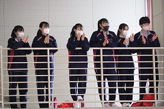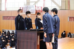 3月9日(火)、男子がサッカーとドッジボール、女子はバレーボールとドッジボールで、球技大会が行われました。応援は自分のクラスのみとし、マスク着用で大声での応援は禁止という約束を守りながら、生徒たちはそれぞれの会場を大きな拍手で盛り上げました。球技大会終了後には、全国大会に出場する音楽部と、東日本大会の出場権を獲得した弓道部(コロナ禍のため大会自体は中止)の壮行会が行われ、久しぶりに2つの学年が集まった体育館では、温かな拍手の音が響いていました。