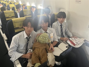 山梨県立巨摩高等学校 > お知らせ > 「修学旅行」4日目 2025年11月12日カテゴリー: お知らせ 「修学旅行」4日目 11月12日(水)、修学旅行4日目(最終日)。本日予定していた首里城見学は、天候によりできませんでしたが、すべての日程を終え、たくさんの思い出を胸に帰宅の途に着きました。 【朝食風景】 【搭乗前】 【機内から見た富士山…羽田空港にもうすぐ到着】 【羽田空港到着。今からバスに乗って、学校に向かいます。】