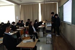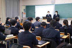 今回は、生徒による班ごとの提案と企業担当者によるフィードバックを頂きました。ご協力くださった企業は、YBS山梨放送・シンゲン家具工業(株)・山十産業(株)・日本ネットワークサービスです。生徒たちは、企業の課題について調べ考えたことを提案し、企業担当者から提案ごとに丁寧なアドバイスをいただきました。1月に行われる全体発表会に向けて、これからアドバイスをいただいたことを参考に提案を完成させます。