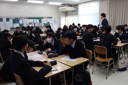 11月19日(水)に「総合的な探究の時間」1年生中間発表が行われました。総合的な探究の時間で育てたい生徒像は「生徒自身が社会とのかかわりの中から解決すべき課題を見出し、自己のあり方・生き方を考え、解決に向けた手法、資質を習得する術を考え、結論に到達できるよう挑戦する。」ということを目標に取り組んでいます。