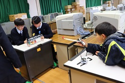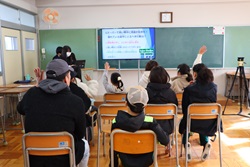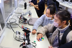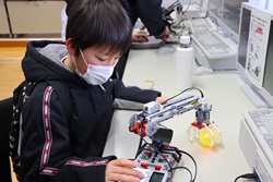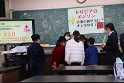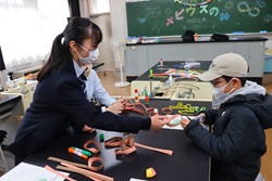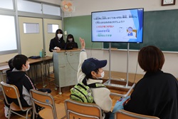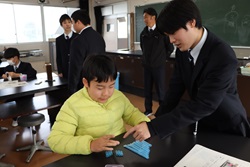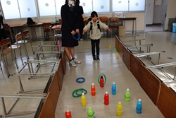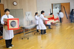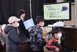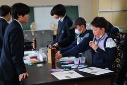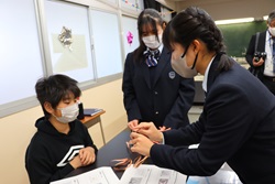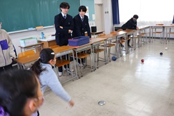 午前中開催された「わくわくアカデミーKOMA」は、近隣の小中学生を招いて、本校理数創造コース1・2年生と2年生人文クラスの生徒が、理数分野と国語・英語・体育・プログラミング・防災等の分野を合わせて11のブースを設け、小中学生と巨摩高生が一緒に楽しく体験しました。巨摩高生が小中学生に優しく説明しながら、和やかに楽しい時間を過ごすことができました。巨摩高生と小中学生にとってこの交流は、貴重な体験になりました。