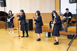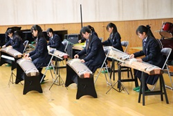 午後開催された「巨摩フェスタ 2026」は、巨摩高校の文化局の部活動が日頃の活動の成果を披露する催しです。音楽部・筝曲部・吹奏楽部・軽音楽同好会・自然科学部のステージ発表と写真部・美術部・華道部・書道同好会による展示発表が行われました。茶道部は、お点前を披露し美味しいお茶と和菓子で歓迎しました。また、自然科学部は、見ている人を引き付ける楽しい実験を行いました。保護者の皆様、近隣の皆様にご参加いただき、巨摩高生が様々な発表を披露することができました。お忙しい中、生徒たちの発表をご覧いただき、温かい応援をありがとうございました。