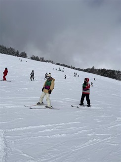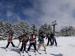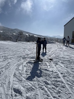 スキー教室、2日目です。快晴の素晴らしいコンディションの中で、充実した実習を行いました。生徒たちは、雪の感触を楽しみながら、それぞれの技術を磨くことができました。