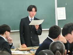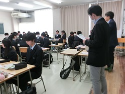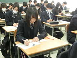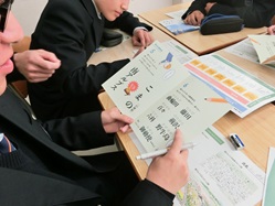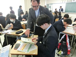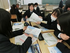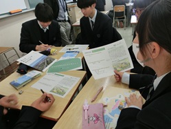 南アルプス市総合政策部政策推進課の職員4名に来校していただき、南アルプス市のニックネームやキャッチコピー、南アルプスICに望むものについて様々な意見を出し合いました。班での共有を行い意見の交換がなされ、南アルプス市の未来を想う大変有意義な機会となりました。