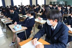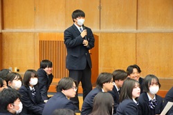 3月13日(金)に「先輩の話を聞く会」が行われました。3月1日に卒業した先輩12名を講師に招いて、自分の受験体験や、学習方法、部活動と学習の両立、進路をどのように決めたか、高校生活をどのように送ってきたか等、先輩たちの貴重な経験を聞くことができました。また、在校生からの質問に対して、丁寧にわかりやすく答えてくれました。1・2年生にとって次年度の過ごし方と進路について考えを深める機会になりました。