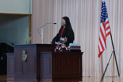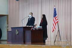 2学期終業式では、校長先生の話の後、11月から本校ALTとして着任したJosie先生が紹介され、Josie先生からは全校生徒に向けた英語での自己紹介がありました。Welcome to KOMA high school,Josie先生!!どうぞよろしくお願いします。