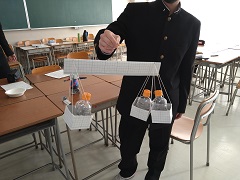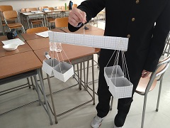 2021年11月14日(日)に科学の甲子園山梨大会第1ステージがオンラインにより行われました。本校では2年生が修学旅行初日で参加できず、理数創造コースの1年生2チームが出場しました。山梨県全体では、39チームが出場しています。第1ステージでは筆記競技と総合競技があり、総合競技の内容は、「重さを量れ!」です。指定された材料、道具を使用し重量を正確に量り誤差で勝敗をつけます。内容には、1年生はまだ学習していない分野があるため、10月に2回理数創造コースの1~3年生合同で学習会を行いました。2,3年生からアイディアや知識をもらい、あとは放課後集まって筆記試験学習会や総合競技準備を行いました。当日は両チーム共にとてもチームワークがよく、スムーズに「はかり」を作ることができ、計測もばっちりでした。準備は大変でしたが、とても充実した大会となりました。来年度も絶対に参加しようとメンバーで誓っていました!