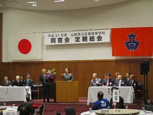 山梨県立巨摩高等学校 > 同窓会 > 平成31年度同窓会定期総会 2019年4月21日カテゴリー: 同窓会 平成31年度同窓会定期総会 4月21日(日)、「新創紀 ~未来創造序曲~」をテーマに、同窓会定期総会が桃源文化会館で開催されました。第1部の定期総会に続く、第2部懇親会アトラクションでは、日頃の支援に対する感謝の気持ちを込めて、箏曲部と吹奏楽部の現役高校生による演奏が披露されました。