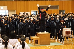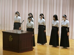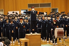 3月13日(水)に「壮行会」が行われました。弓道部が3月22日~24日に神奈川県横須賀市で行われる「東日本高等学校弓道大会」に出場します。また、吹奏楽部が3月29日に東京の尚美バリオホームで行われる「2024年 第26回日本ジュニア管打楽器コンクール」に出場します。全校生徒が、健闘を祈ってエールを送りました。
